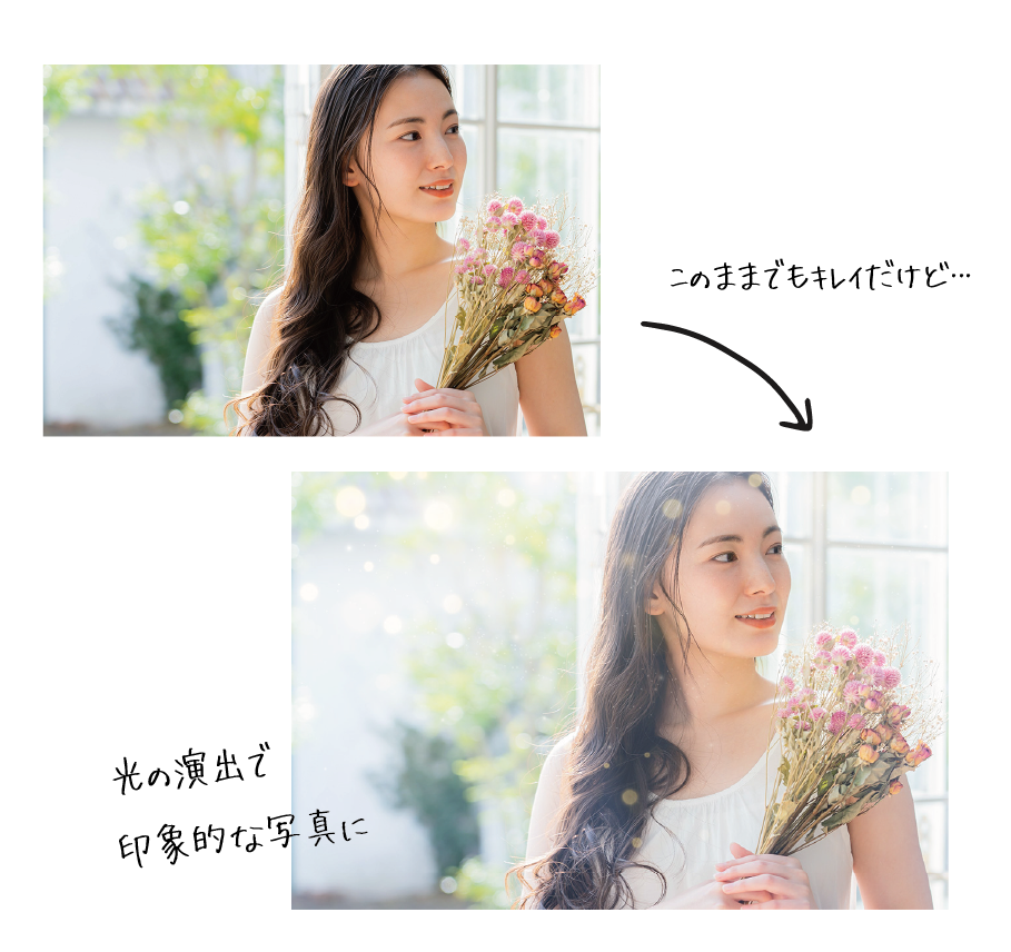 - Webサイトに使うモデル写真や商品写真をより魅力的に見せるための加工や補正。