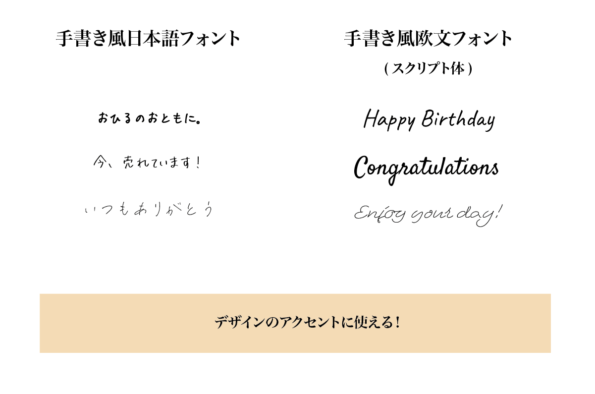 筆文字や手描き風のフォントは、アクセントとして使うと効果的です。