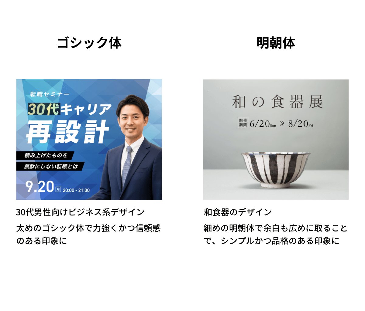 和文フォント:明朝体とゴシック体