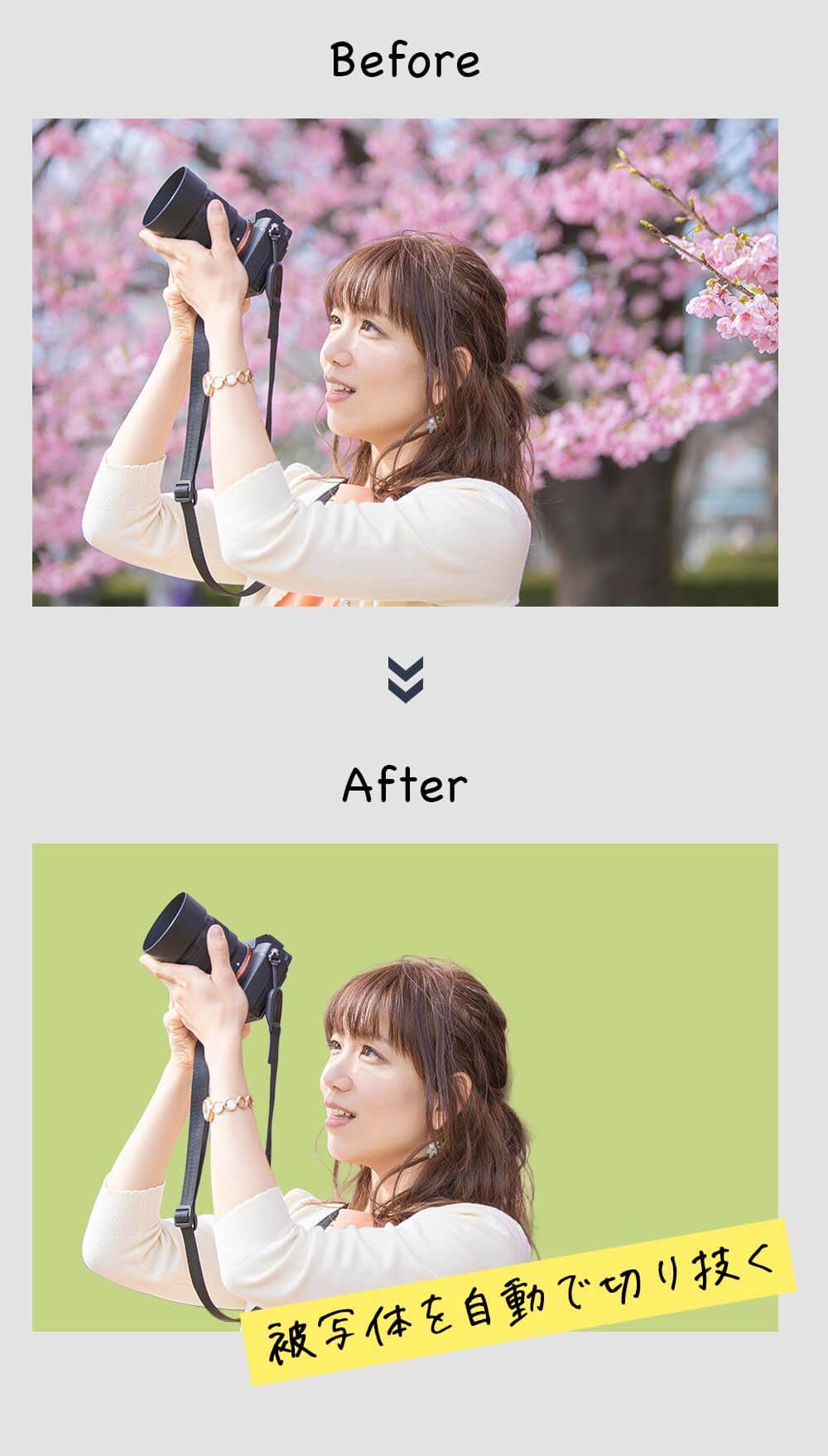 写真の中から人物やモノをワンクリックで切り抜けます。一番使っている機能じゃないでしょうか。