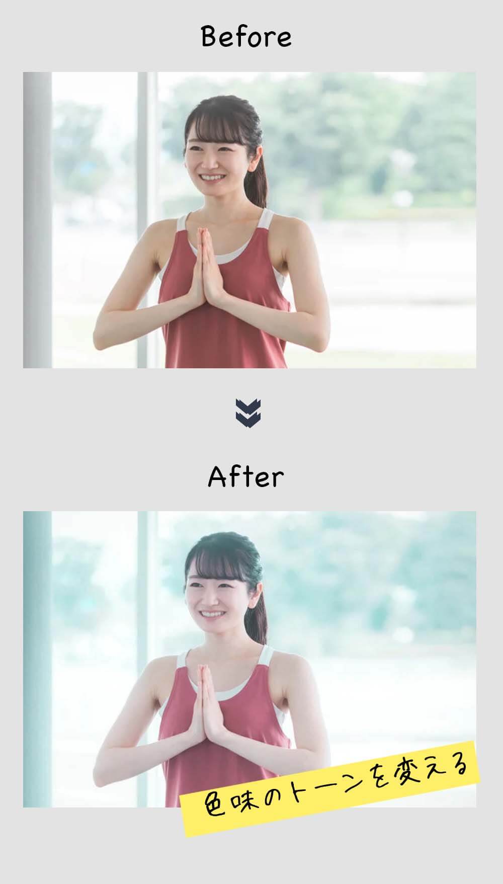 寒色系や暖色系など、カラーのトーンを簡単に変更できるので、サイトのデザインに合わせて写真の印象を調整できます。