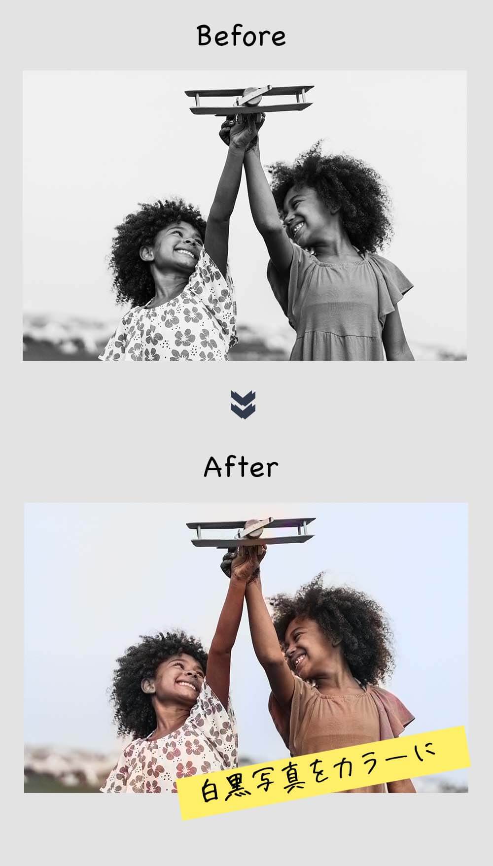 また、逆に白黒写真をカラーに変更することも可能です。