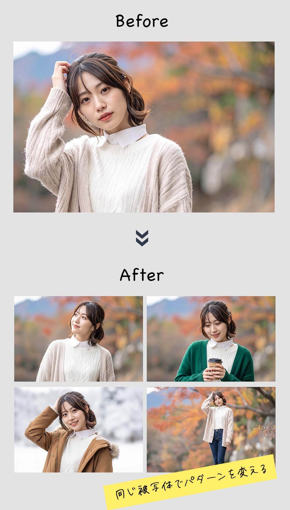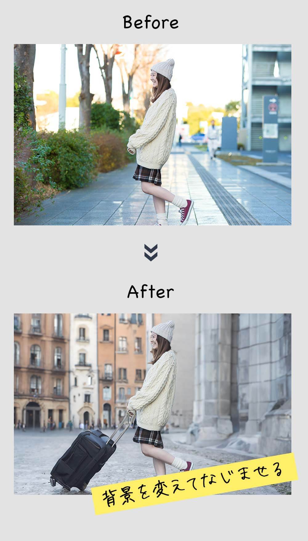 一人の被写体で、ポーズを変えたり、物を持たせたりといった編集が簡単にできるようになりました。