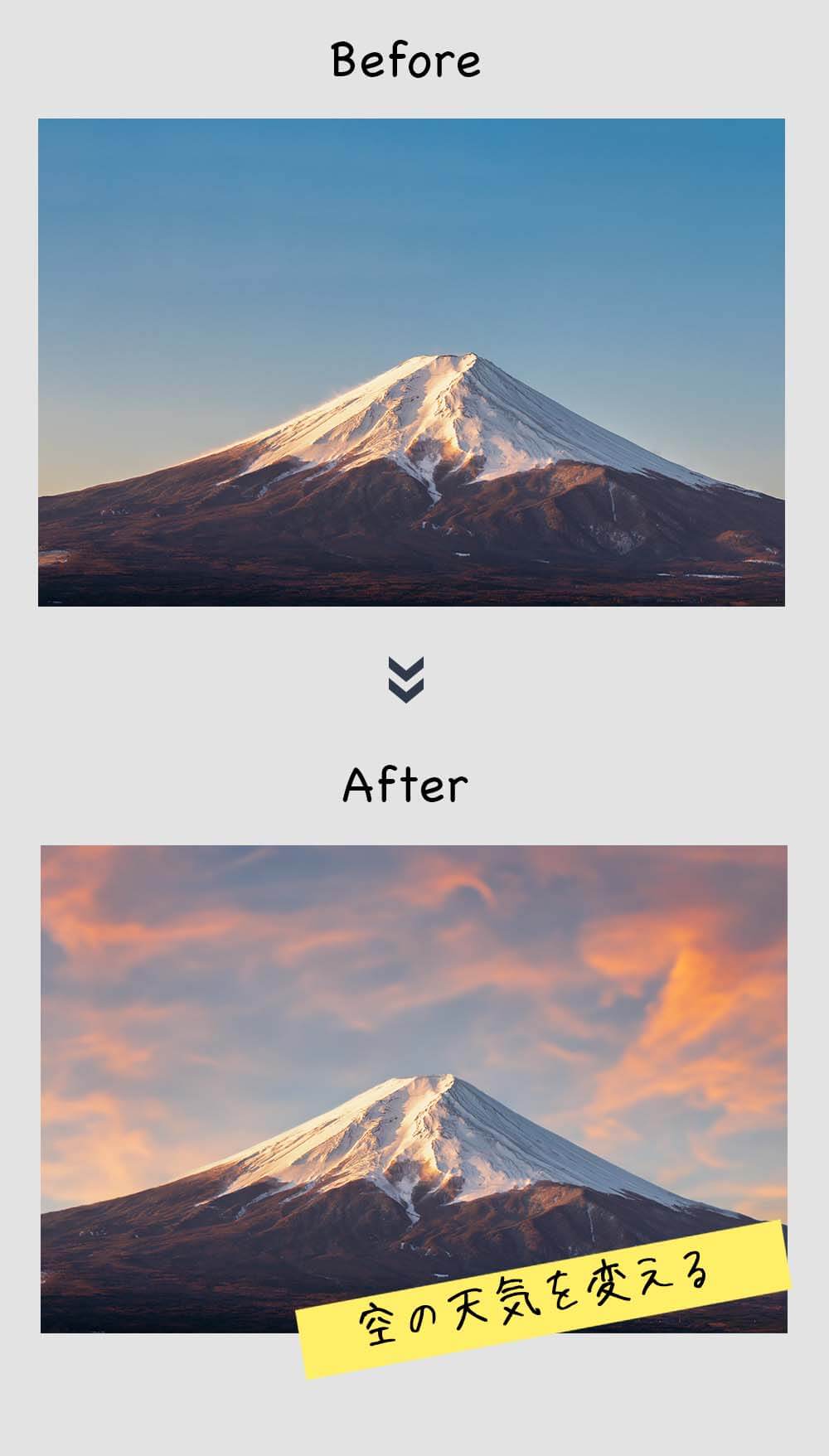 「この写真使いたいんだけど曇ってるんだよな…」って時も、Photoshopなら晴天にすることができます!