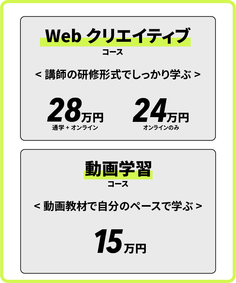 受講費用 | 通学:28万円 オンライン:24万円 |