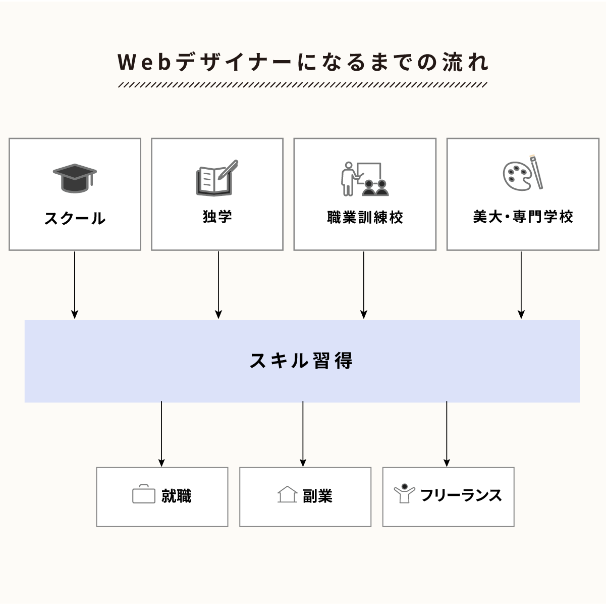 2026年の今、Webデザイナーになるには以下の4通りがあります。